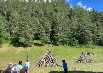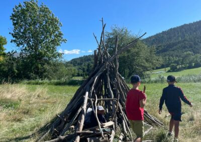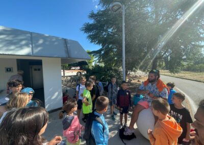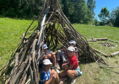 Après le repas, sous la houlette des animateurs (Laureen et Camille chez les filles et Ilian et Maxence chez les garçons), les enfants ont pris le temps de s’installer dans les dortoirs et ont préparé leur sac à dos. Après ce temps d’installation et un petit temps libre aux cabanes qui garnissent le jardin des Cytises, place au premier jeu du séjour placé sous le signe de l’adresse, de la concentration et de la précision !