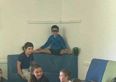 Pour clore cette première journée de colo, les enfants ont eu un rapide récapitulatif des règles de vie en collectivité (étape incontournable et essentielle pour passer une bonne semaine dans la joie et la bonne humeur) ainsi qu’une présentation des activités de la semaine. Après des petits jeux de cohésion et de présentation animés par Camille et Maxence, les enfants se sont couchés avec une petite histoire contée par Ilian.