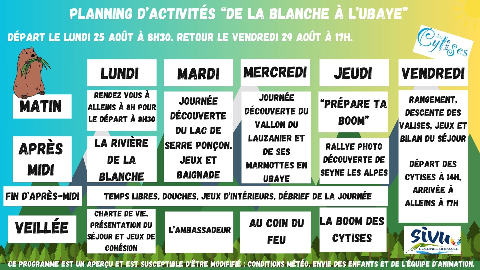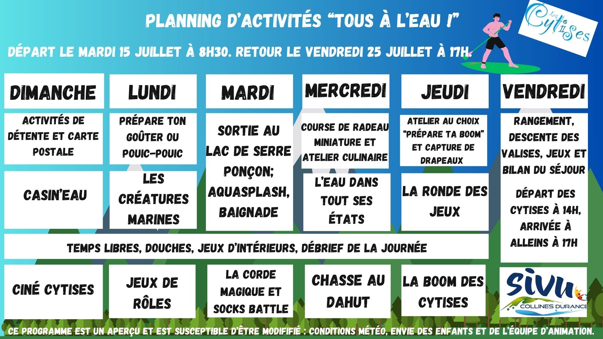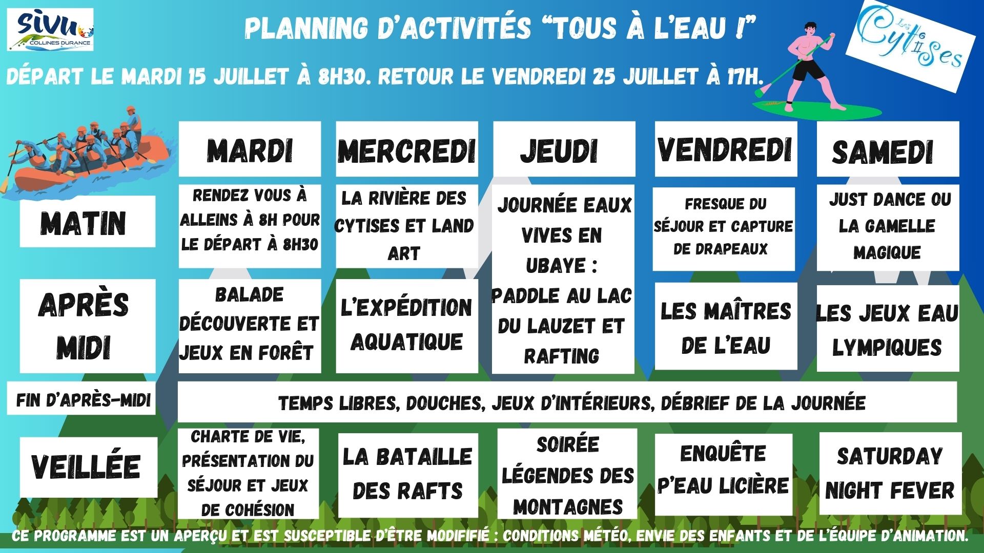 Plannings des séjours d’été 2025