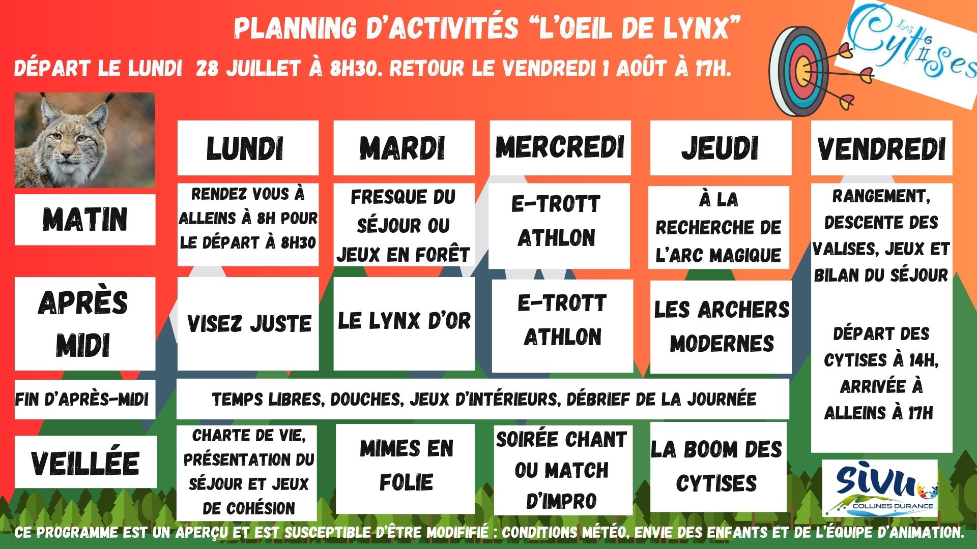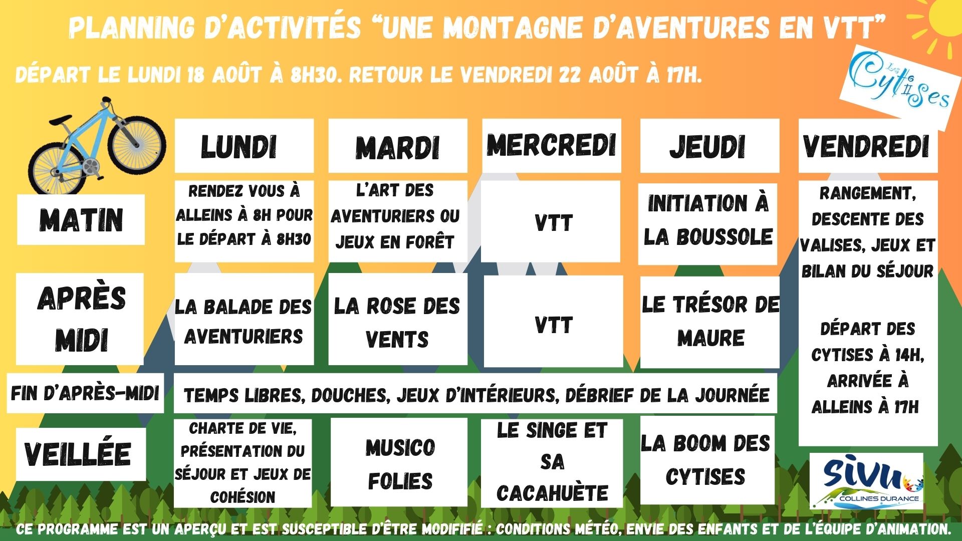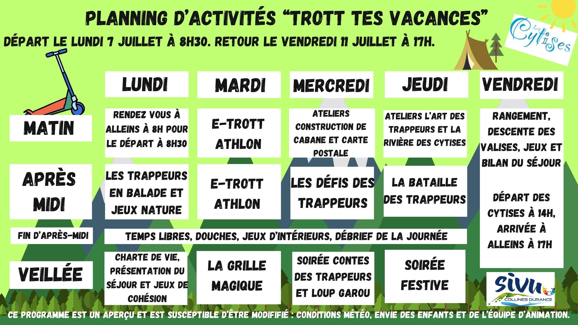 Plannings des séjours d’été 2025